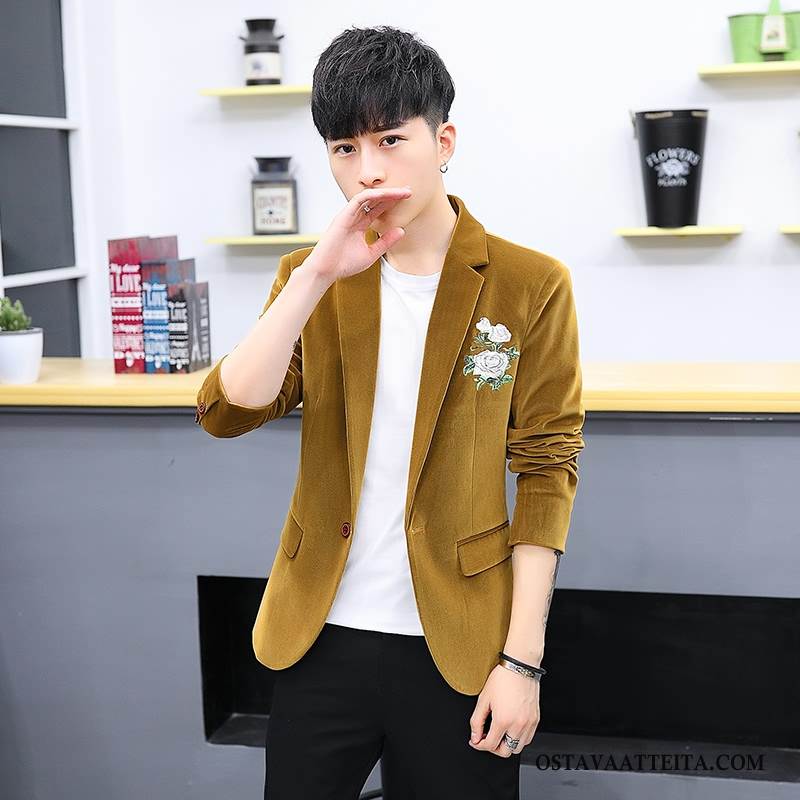 Bleiseri Miesten Sametti Uusi Nuoret Casual Kulta Klubitakki