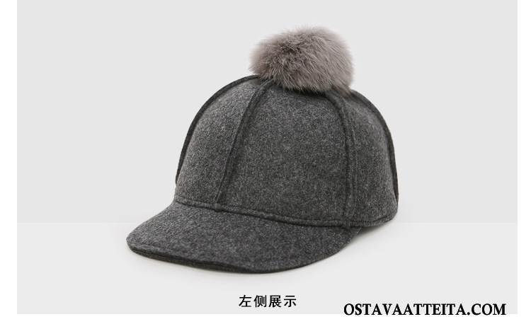 Hattu Naisten Korkki Syksy Lapsi Harmaa Pompon Villit