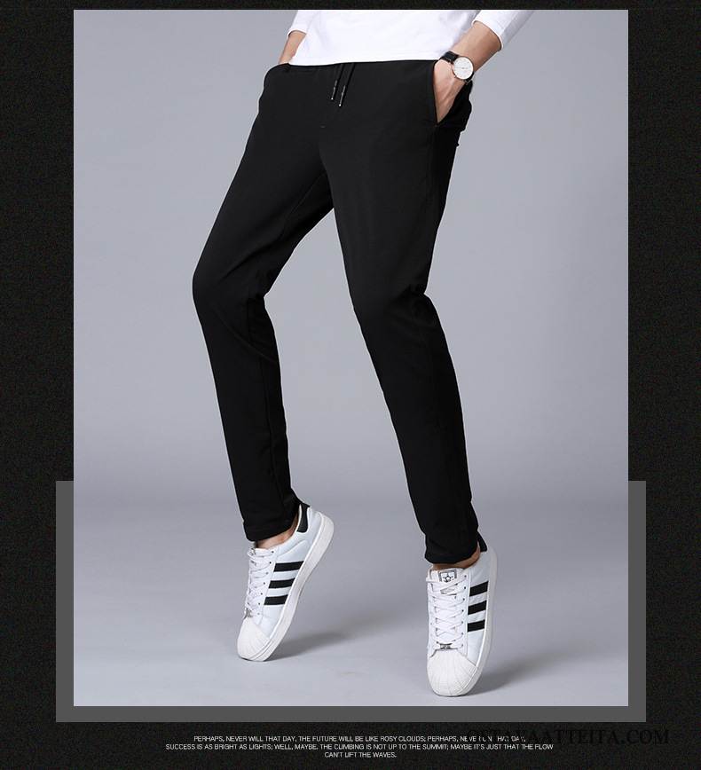 Housut Miesten Casual Housut Tiukka Kynä Housut Ryppy Puhdas Musta