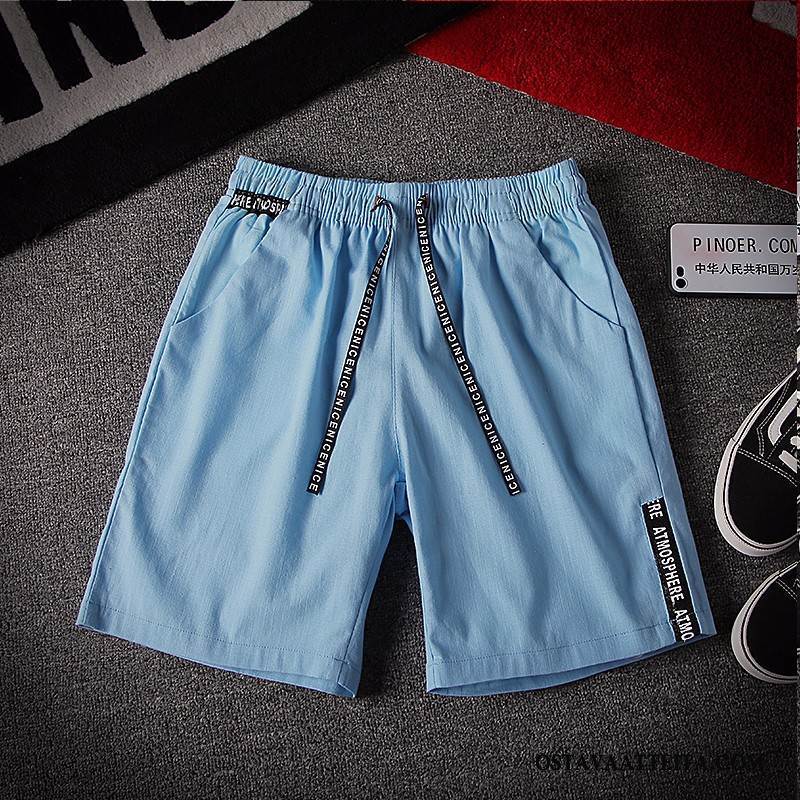 Housut Miesten Puuvilla Ja Liinavaatteet Rannalle Shortsit Puhdas Sininen Miehille