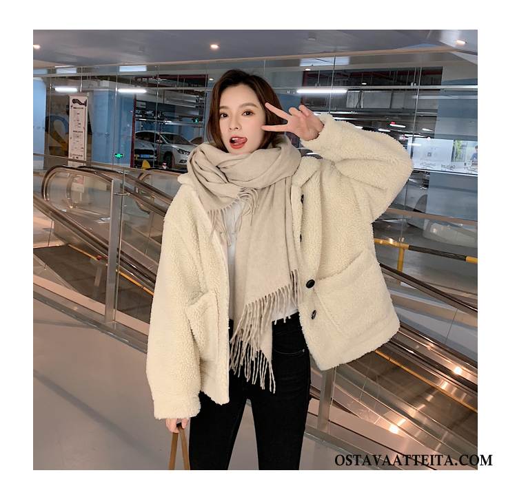 Lyhyt Takki Naisten Nahka Talvi Pieni Naisille Valkoinen Uusi