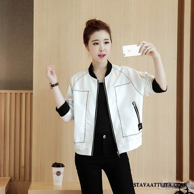 Lyhyt Takki Naisten Vetoketju Löysät Valkoinen Suuntaus Lyhyet Pitkät Hihat