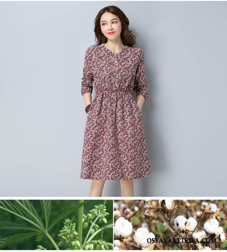 Mekko Naisten Suuntaus Holkki Jauhe Syksy Punainen Pyöreä Kaula