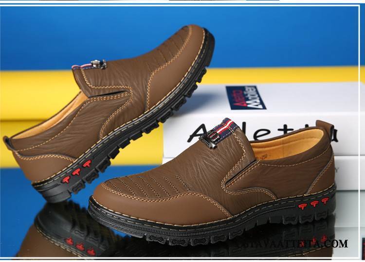 Mokkasiinit Miesten Miehille Kengät Ruskea Nauhaton Nahkakenkiä Rento
