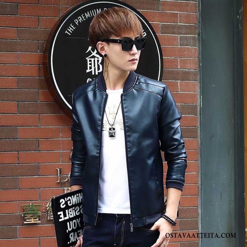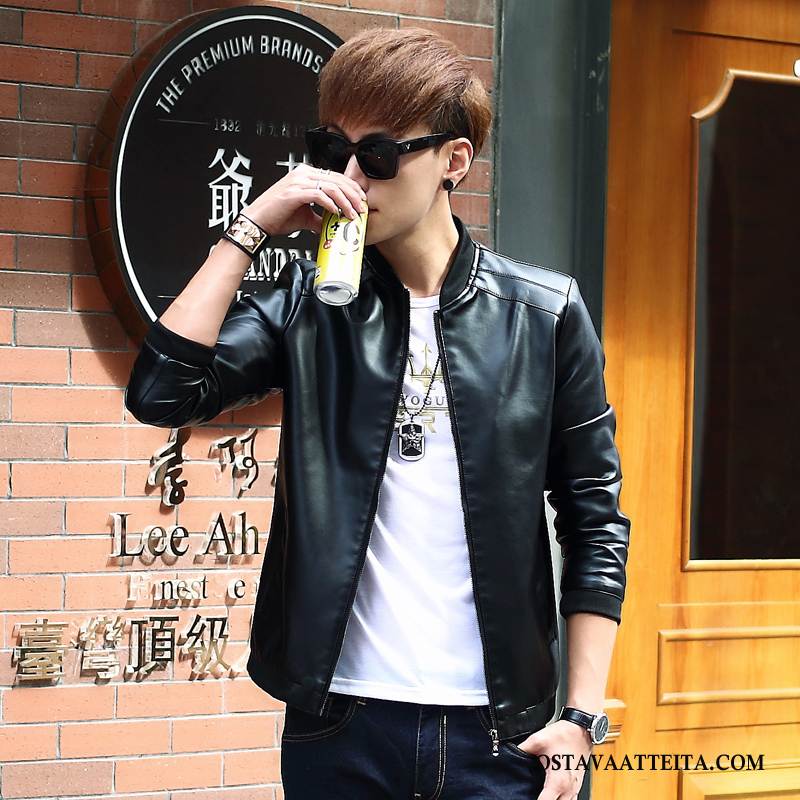Nahkavaatteet Miesten Nuoret Moottoripyöräpalvelu Pu Nahkaa Takki Nahkatakki Tiukka