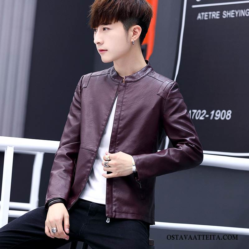 Nahkavaatteet Miesten Takki Nahkatakki Muoti Tiukka Teini-ikäinen Miehille