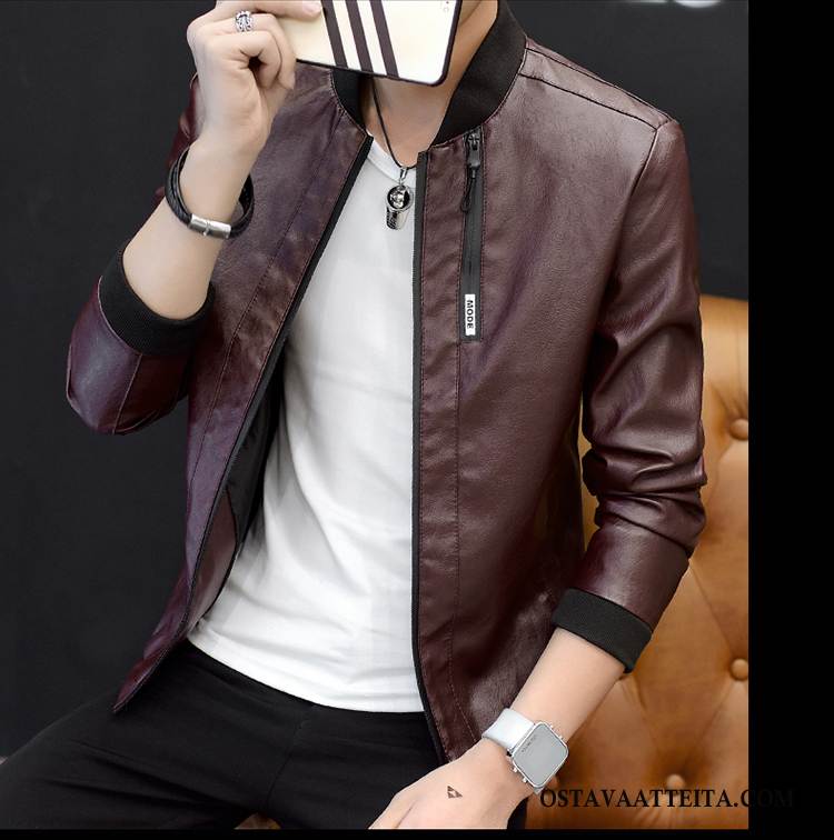 Nahkavaatteet Miesten Miehille Nahkatakki Syksy Uusi Syvä Väri