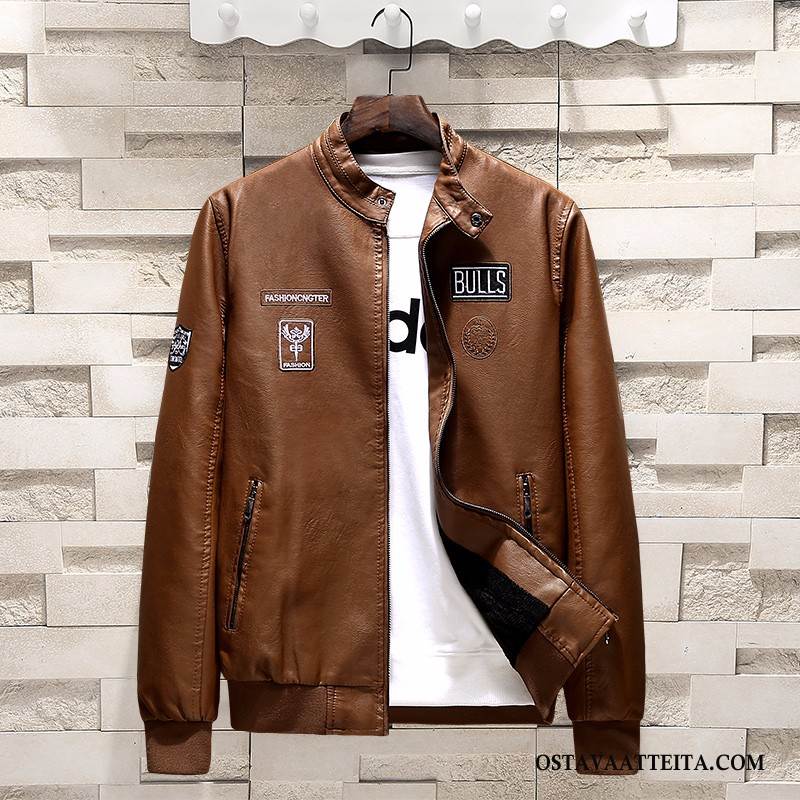 Nahkavaatteet Miesten Takki Syksy Tiukka Nahkatakki Moottoripyöräpalvelu Trendi