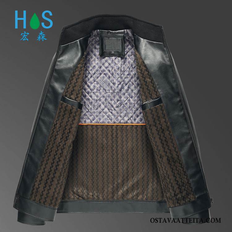 Nahkavaatteet Miesten Syksy Takki Plus Cashmere Talvi Miehille Musta