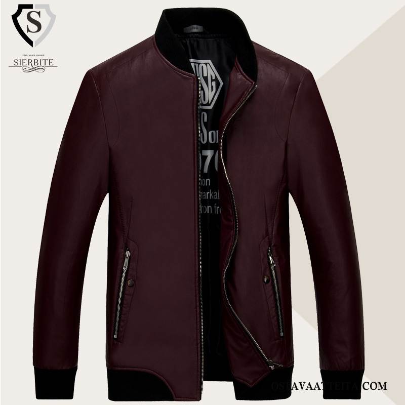 Nahkavaatteet Miesten Korkea Kaulus Syksy Talvi Takki Nahkatakki Miehille