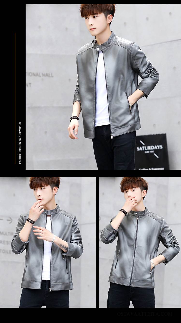 Nahkavaatteet Miesten Takki Syksy Tiukka Nahkatakki Moottoripyöräpalvelu Trendi
