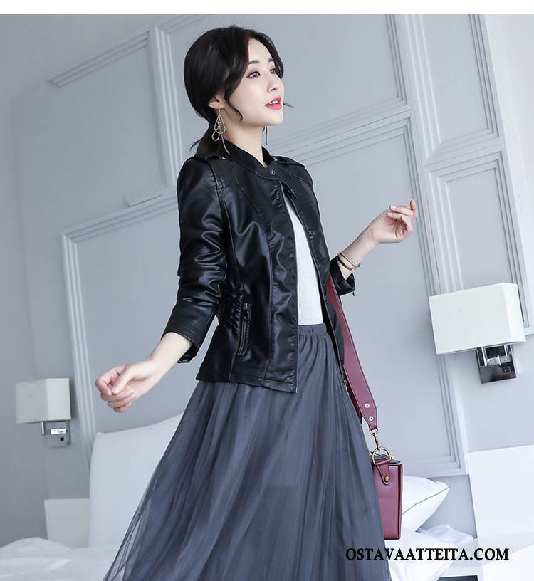 Nahkavaatteet Naisten Nahkatakki Muoti Lyhyt Syksy Musta Suuntaus