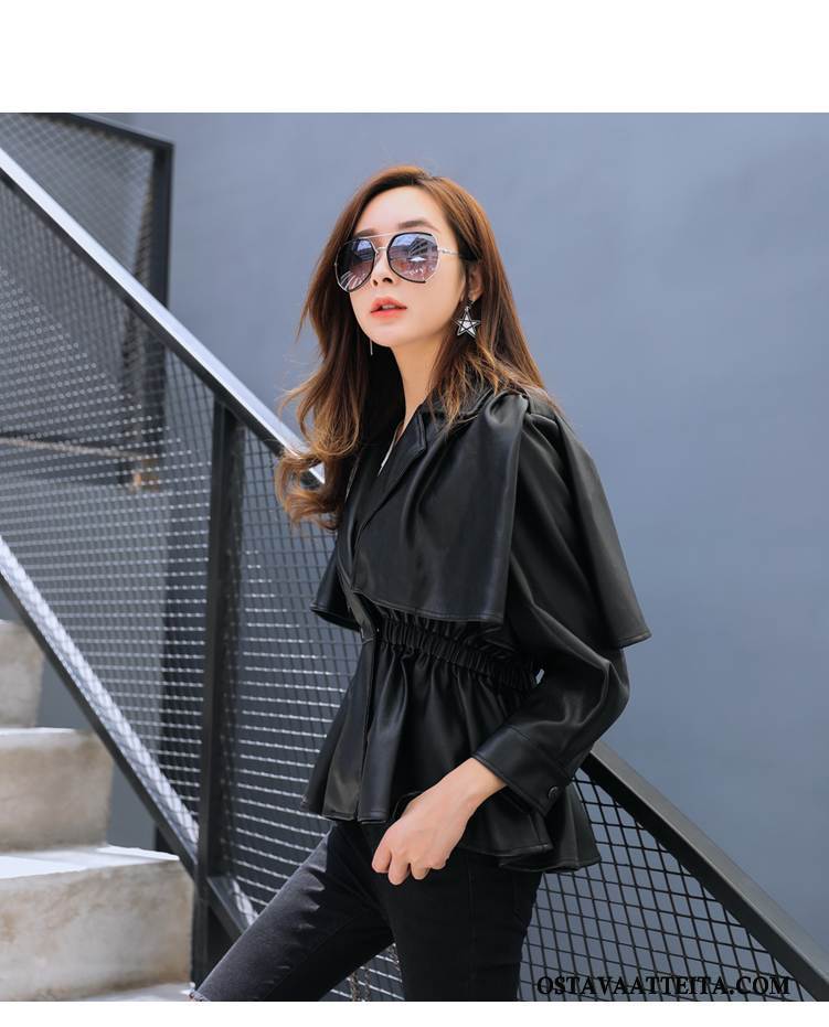 Nahkavaatteet Naisten Suuntaus Ohut Syksy Yksinkertainen Nahkatakki Musta