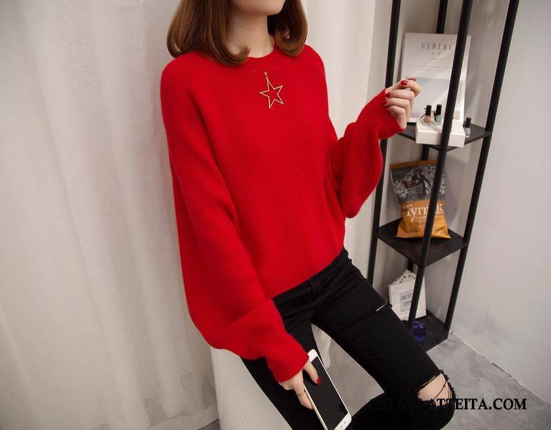 Neuletakki Naisten Punainen Talvi Neulottu Paita Muoti Sekoittaminen Tiukka
