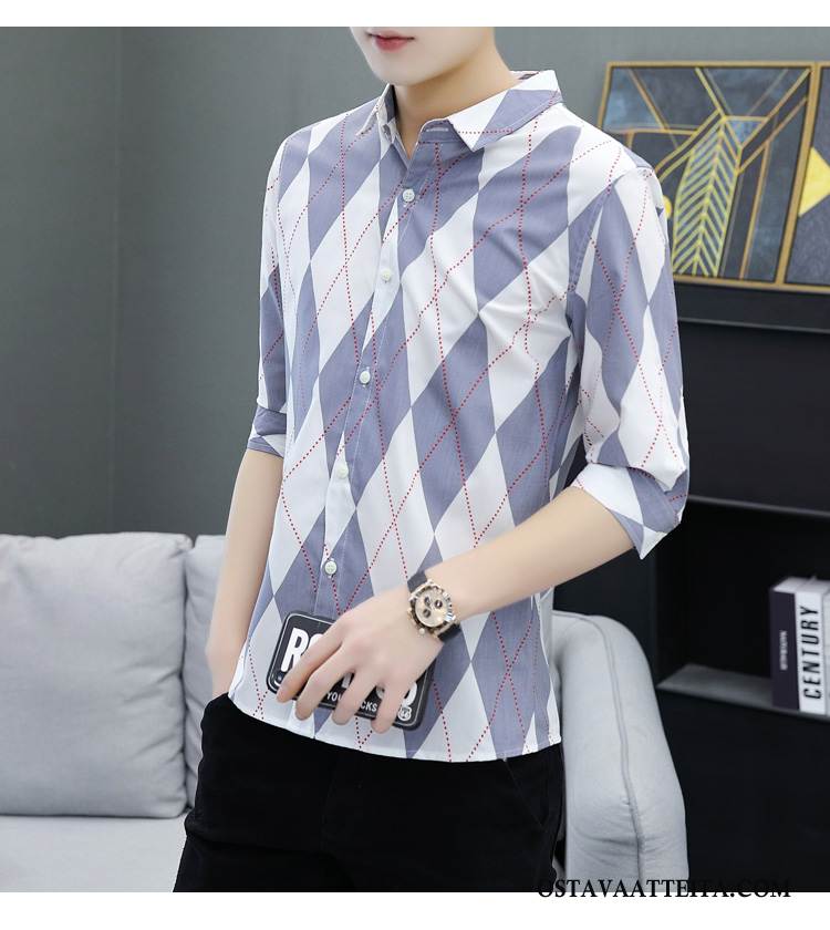 Paita Miesten Muoti Miehille Lyhythihainen Paita Kauluspaida Puoli Hiha Sininen