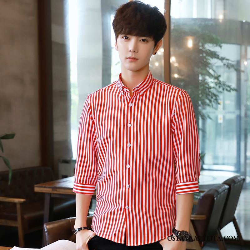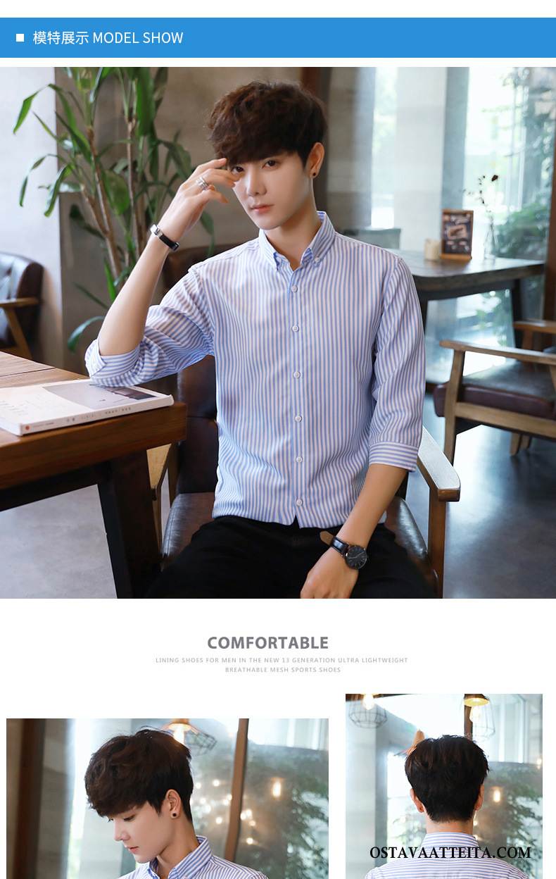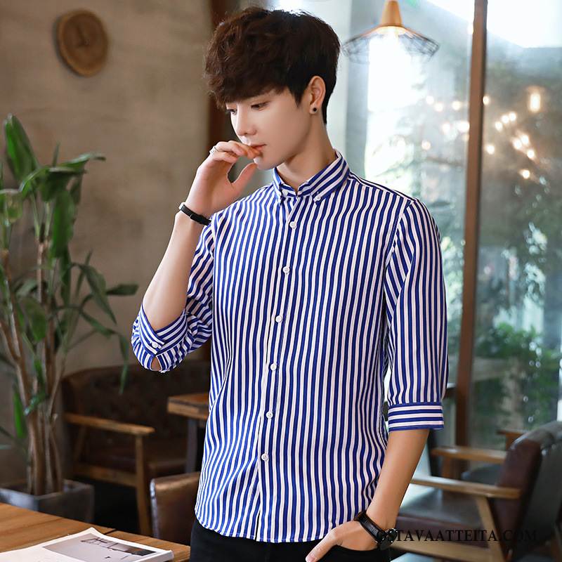 Paita Miesten Raita Takki Suuntaus Komea Sininen Puoli Hiha
