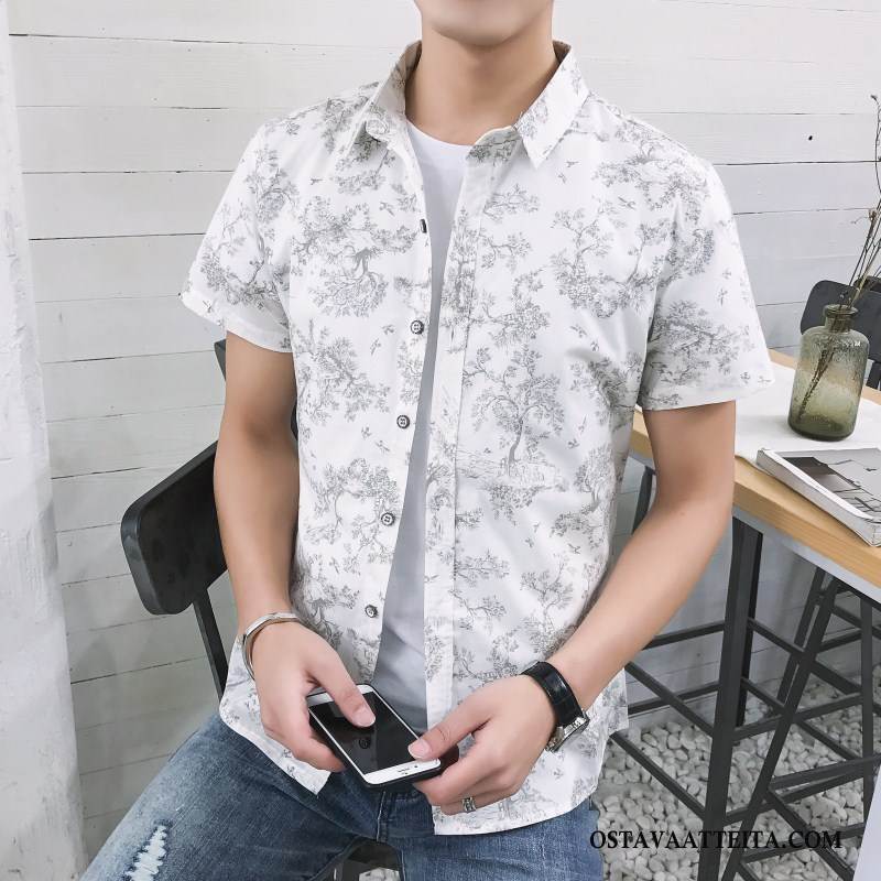 Paita Miesten Lyhythihainen Valkoinen Puoli Hiha Suuntaus Uusi Kesä