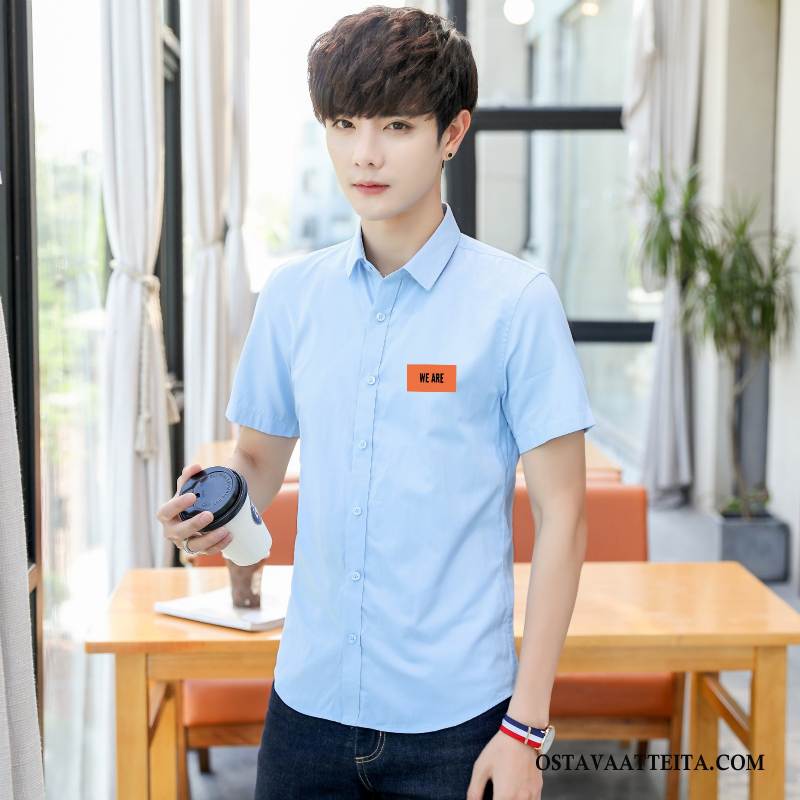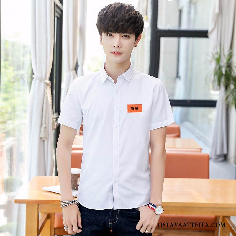 Paita Miesten Lyhythihainen Paita Kauluspaida Liiketoiminta Valkoinen Komea Casual
