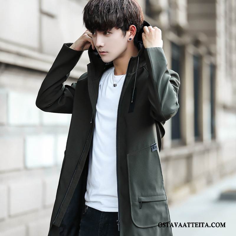 Puuvilla Takki Miesten Uusi Muoti Hupullinen Pitkässä Osassa Miehille Musta