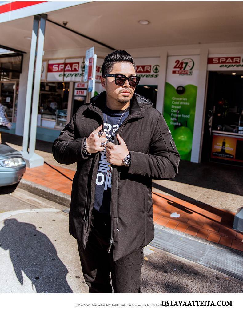 Puuvilla Takki Miesten Uusi Muoti Hupullinen Pitkässä Osassa Miehille Musta