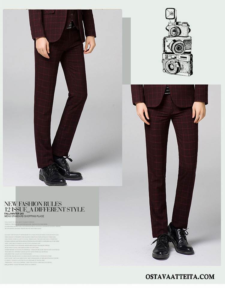 Puvunhousut Miesten Casual Housut Syksy Kynä Housut Suora Löysät Ruudullinen