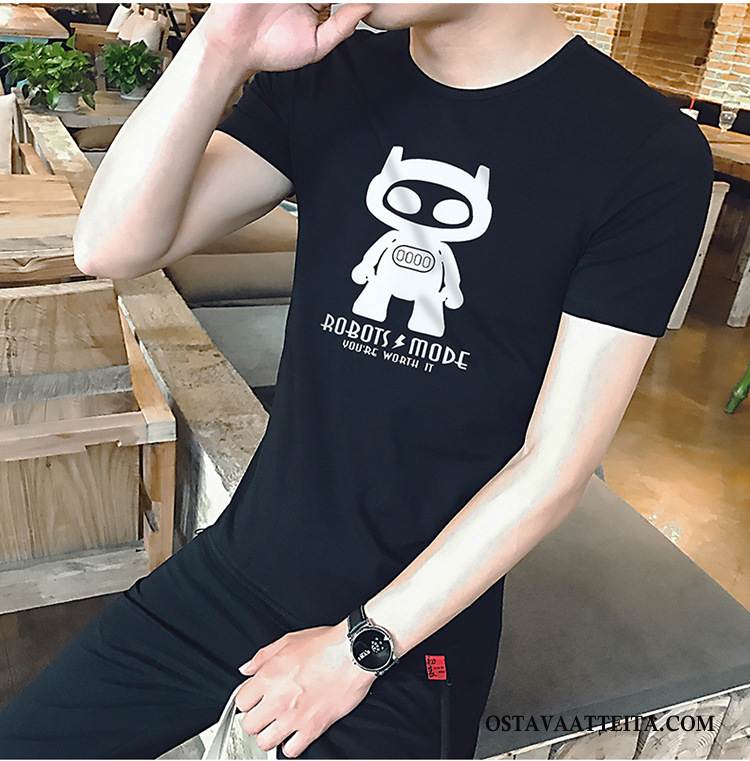 T-paidat Miesten Musta T-paita Lyhythihainen Kesä Suuri Koko Suuntaus