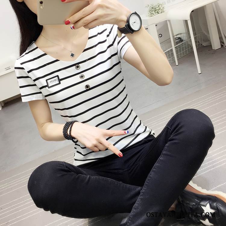 T-paidat Naisten Suosittu Muoti Raita Valkoinen Kaupunki Nuoret