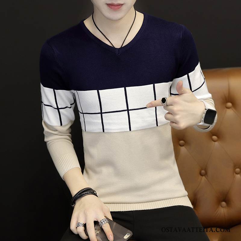 Villapaita Miesten Uusi Muoti Neulottu Paita Aluspaita Pitkät Hihat Syksy