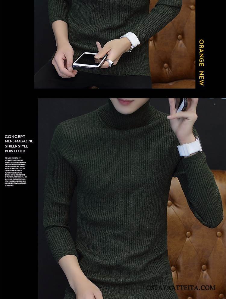 Villapaita Miesten Aluspaita Neulottu Paita Nuoret Musta Puhdas Korkea Kaulus