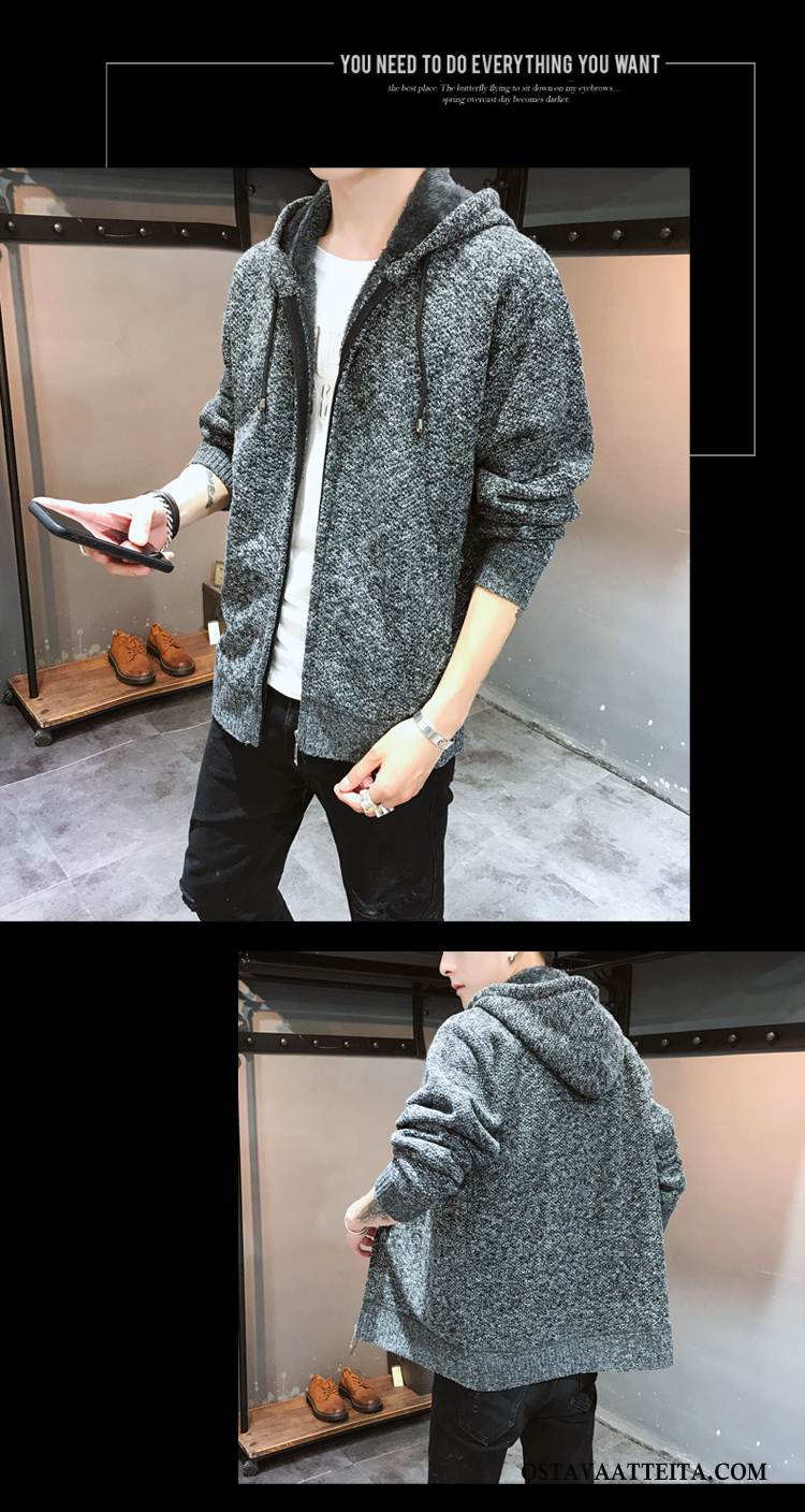 Villapaita Miesten Neuletakki Neulottu Syksy Harmaa Miehille Vaalean