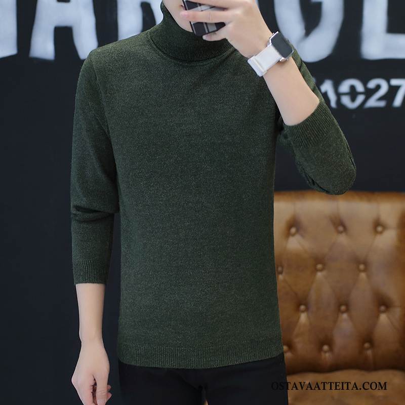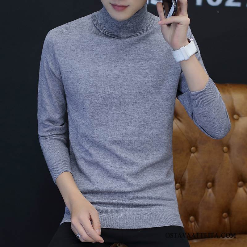 Villapaita Miesten Käänne Harmaa Neulottu Paita Korkea Kaulus
