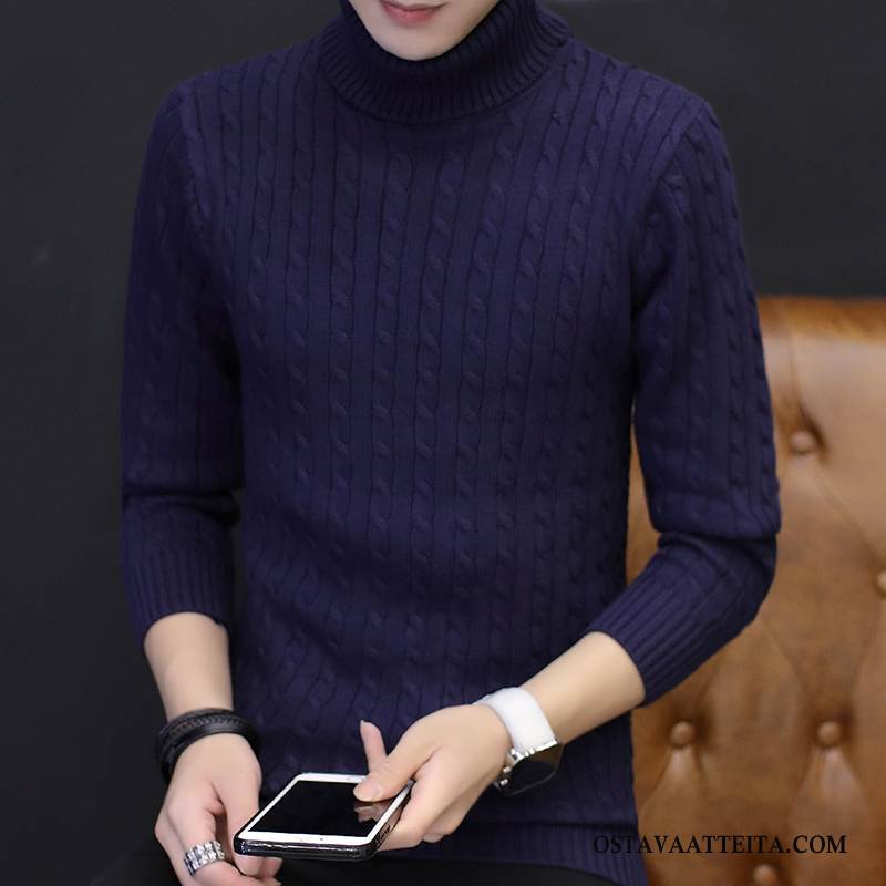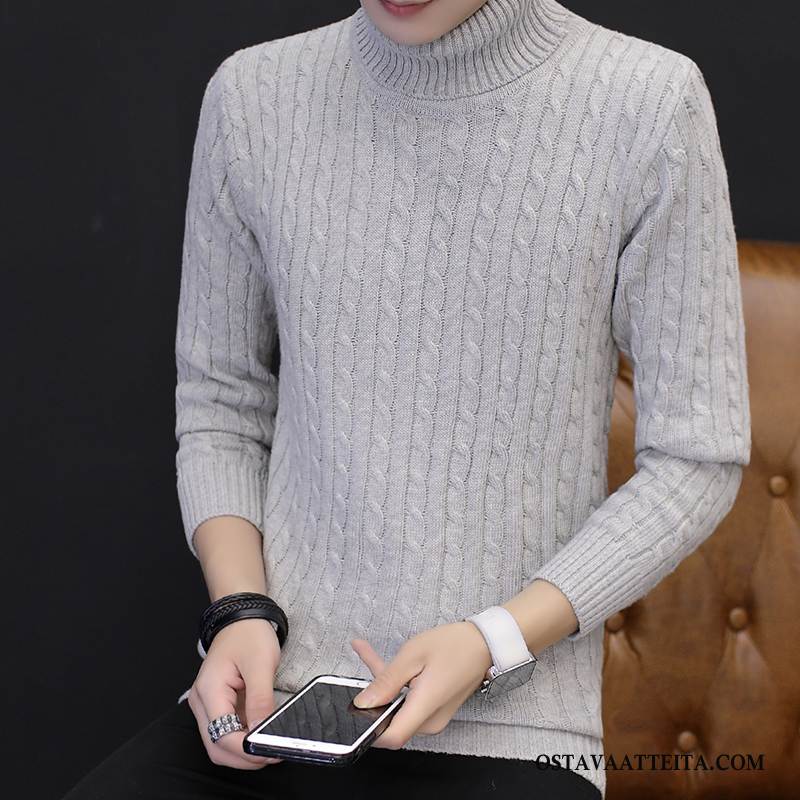Villapaita Miesten Käänne Harmaa Neulottu Paita Korkea Kaulus