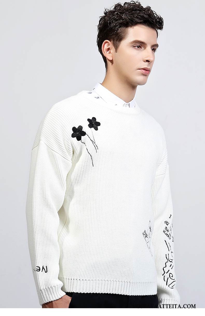 Villapaita Miesten Leggingsit Tiukka Neulottu Paita Suuntaus Korkea Kaulus Valkoinen